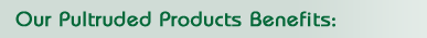 We supply high-strength pultruded products that are designed and manufactured to provide lasting performance in highly corrosive environments. Easily fabricated, the components offer corrosion resistance and light weight benefits when compared to wood or metal products.